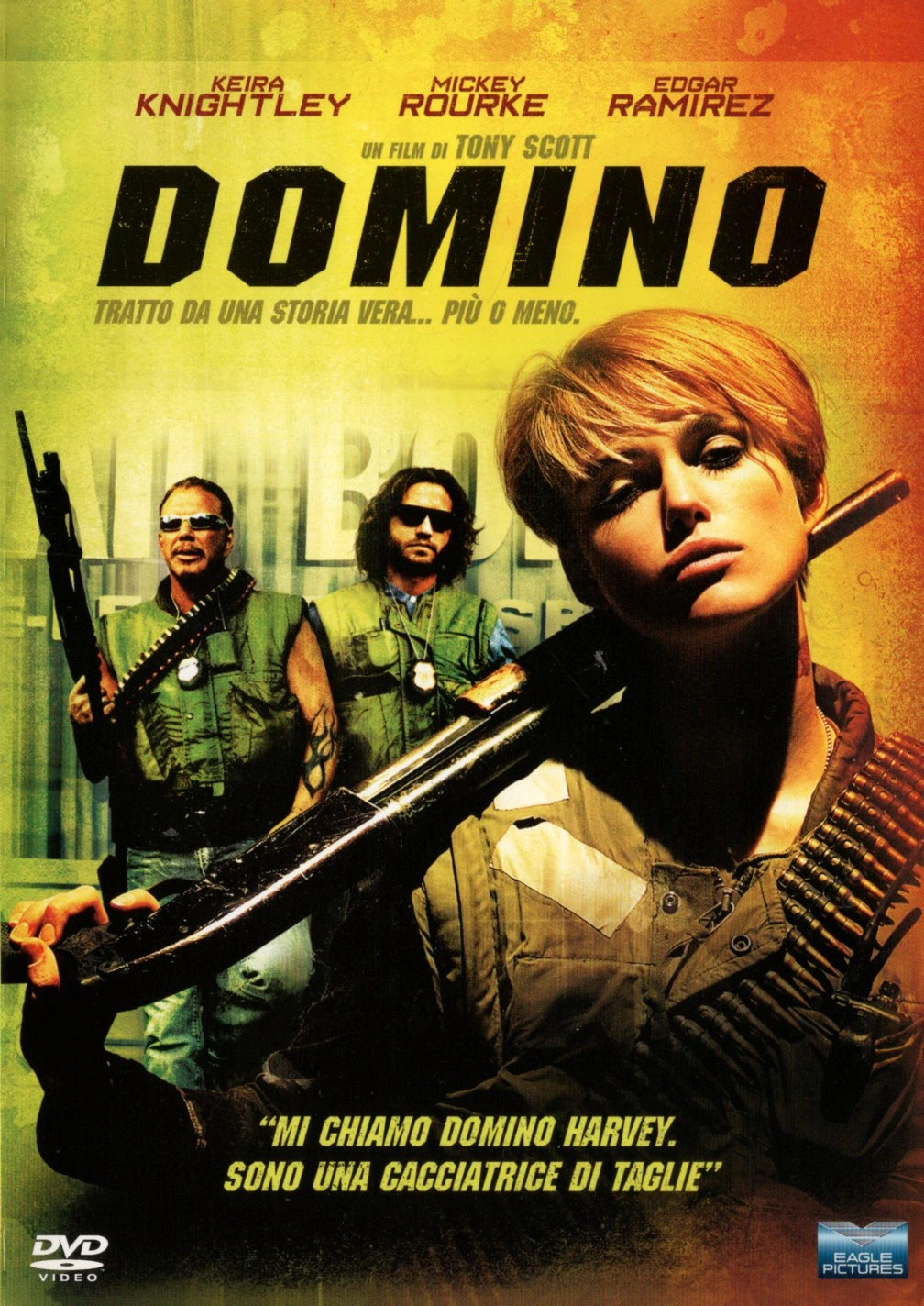 Azione AvventuraDomino Harvey, figlia di una modella e di un attore, invece di seguire le orme dei genitori decide di diventare una cacciatrice di taglie. Grazie all'addestramento dell'esperto Ed Moseby e del suo compare Choco, caccia ai latitanti, scontri a fuoco e azioni ad alto rischio diventano le sue specialità. La sua squadra passa da un successo all'altro e finisce in un reality show proprio quando è sulle tracce di dieci milioni di dollari.