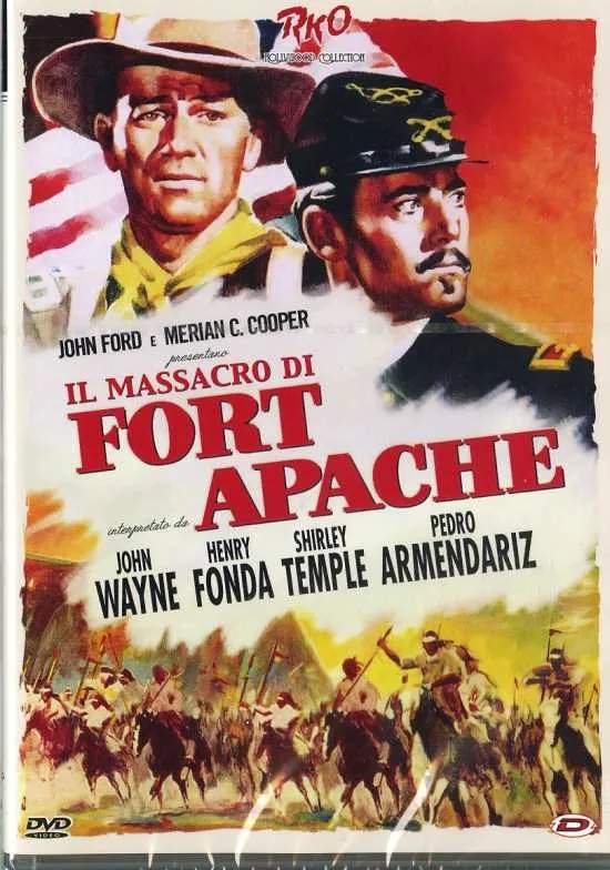 WesternUn generale retrocesso al grado di colonnello e mandato al comando di Fort Apache, cerca ad ogni costo di rivalutarsi sfidando un capo pellerossa, che comunque ha la meglio su di lui. Un giovane, tra i pochi superstiti, sposa la figlia dell'ostinato colonnello, che ci ha rimesso la pelle. Una delle moltissime rivisitazioni della storia di Custer (anche se qui il protagonista si chiama Thursday). È considerato uno dei capolavori western di Ford, superato forse soltanto da Ombre rosse e da Sfida infernale. Henry Fonda fa il colonnello e toglie quasi tutto lo spazio a Wayne, relegato in una parte quasi da caratterista. Ruolo determinante ha invece la famosa "Valle dei monumenti".